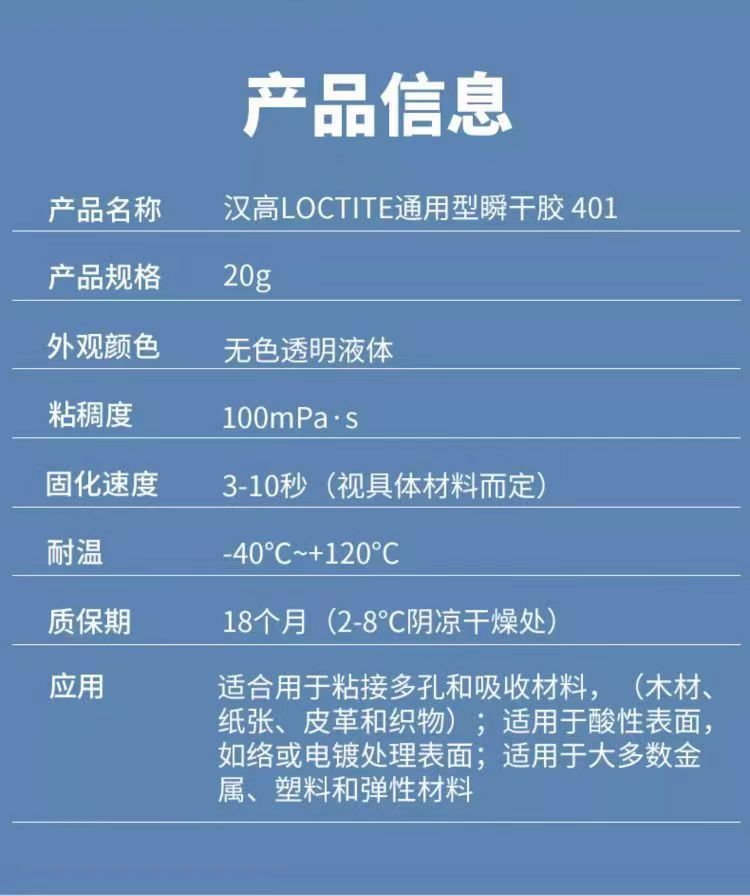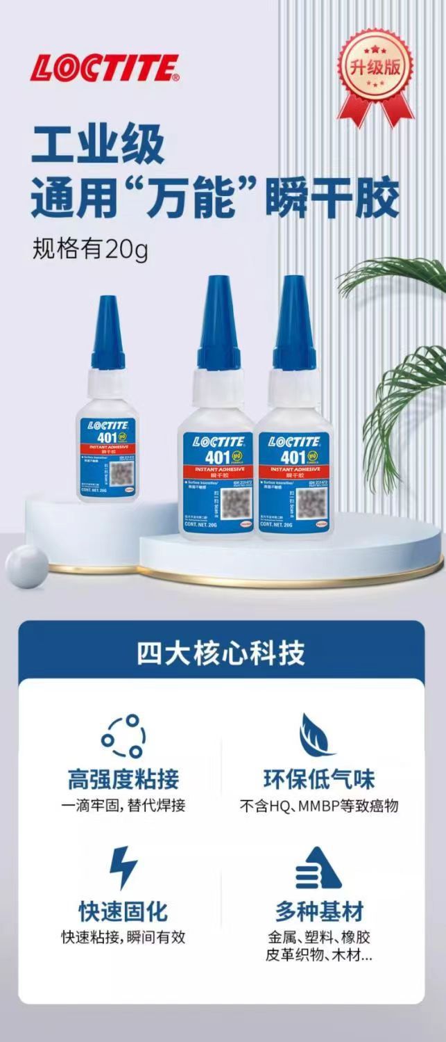 정품 헨켈 로타이트 401 인스턴트 접착제 플라스틱 PVC 아크릴 고무 금속 빠른 건조 인스턴트 접착제
