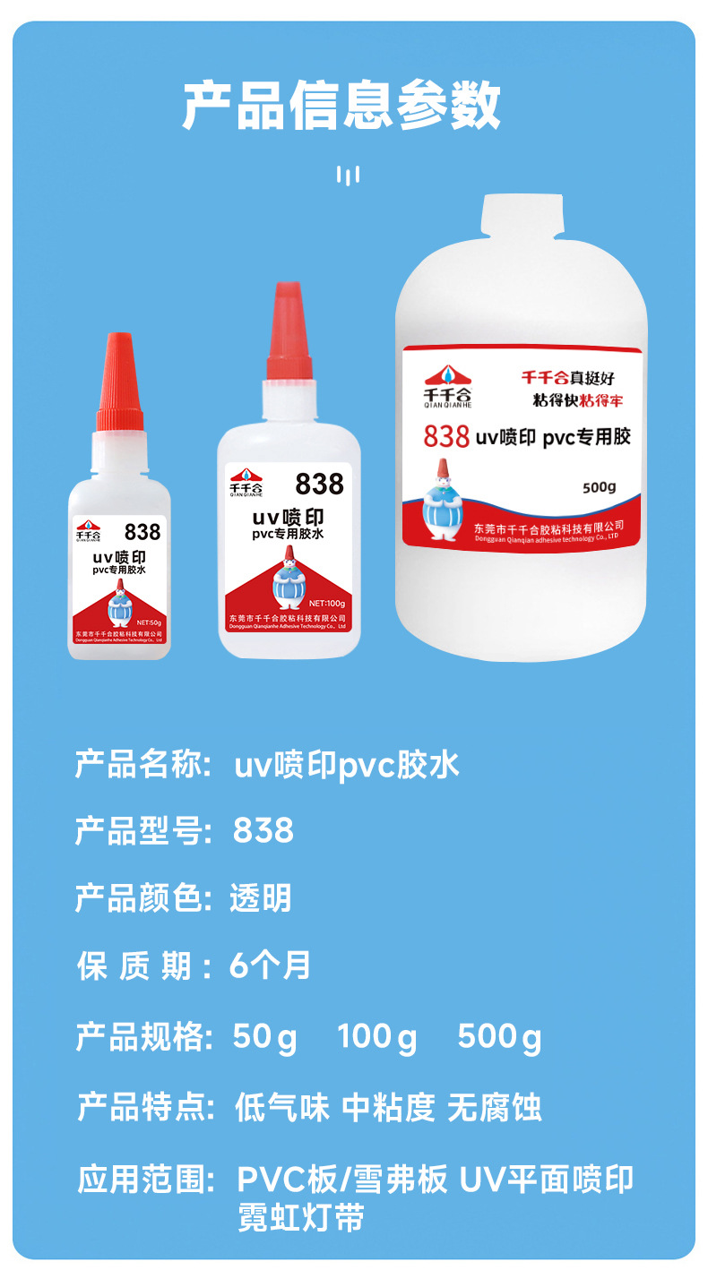 비 부식성 838UV 스프레이 인쇄 PVC 특수 접착제 폼 보드 스노우 보드 네온 라이트 아크릴 설치 접착제