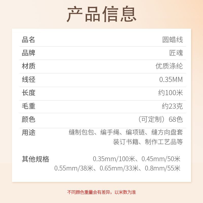 목수 영혼 68 색 둥근 왁스 실 도매 0.35mm 수제 DIY 로프 팔찌 폴리 에스테르 가죽 재봉 가닥