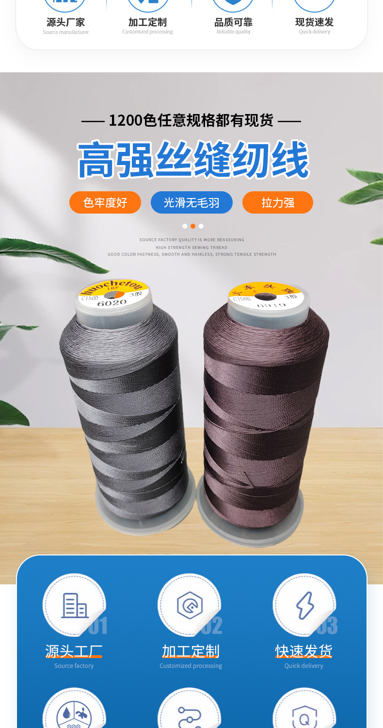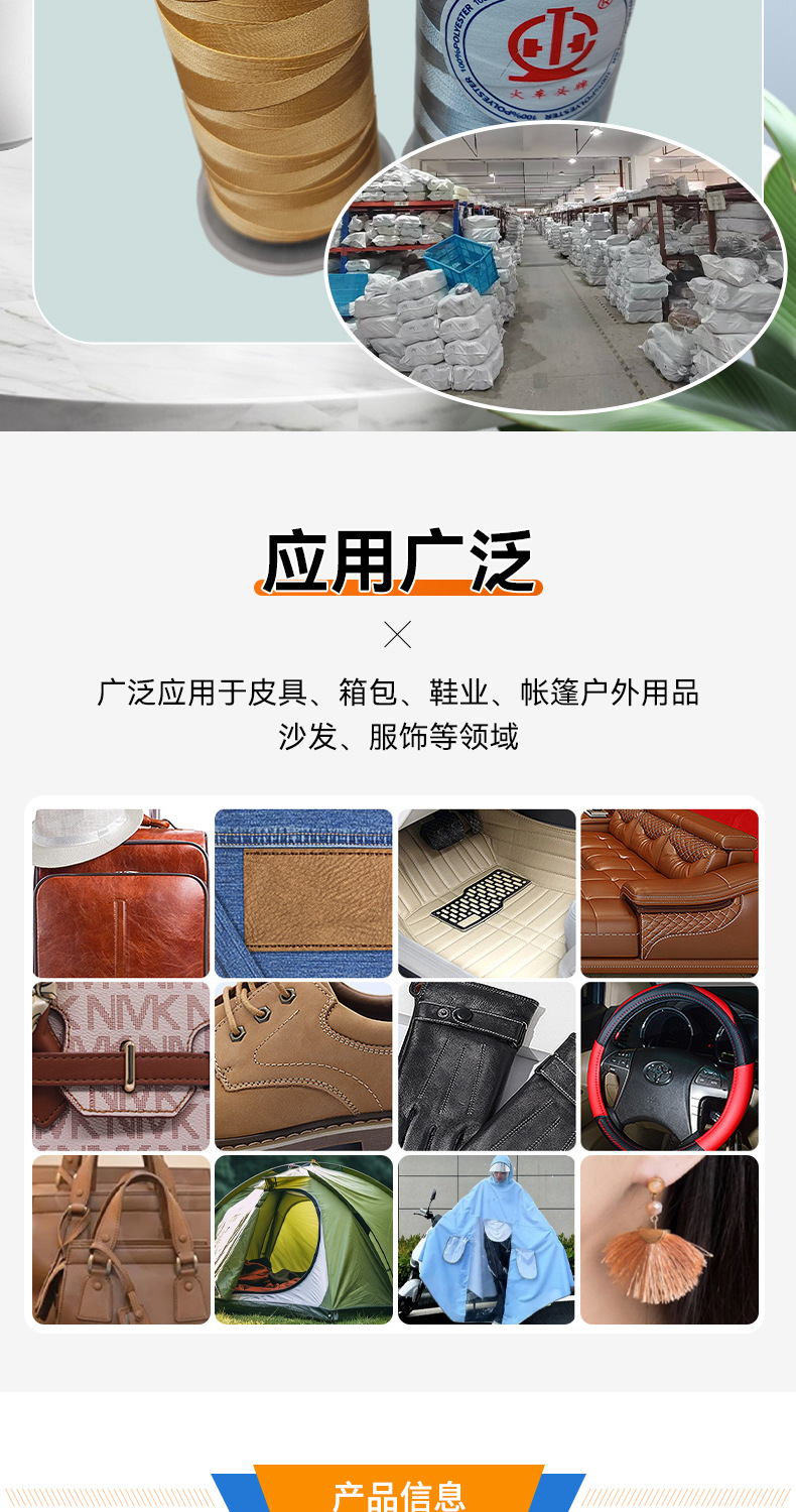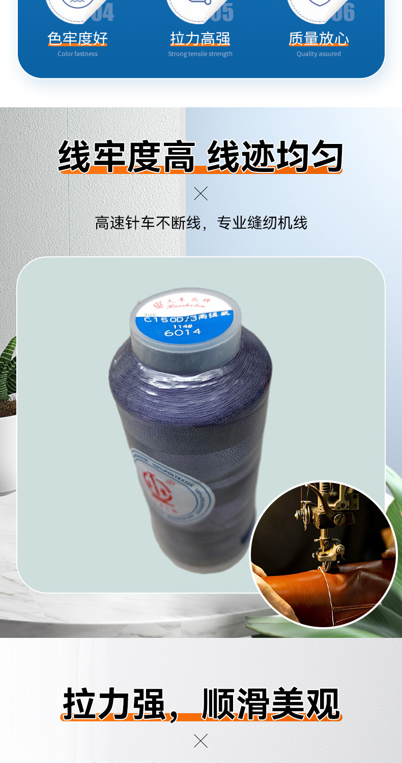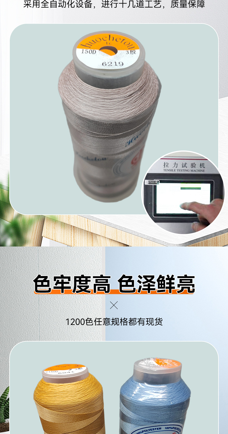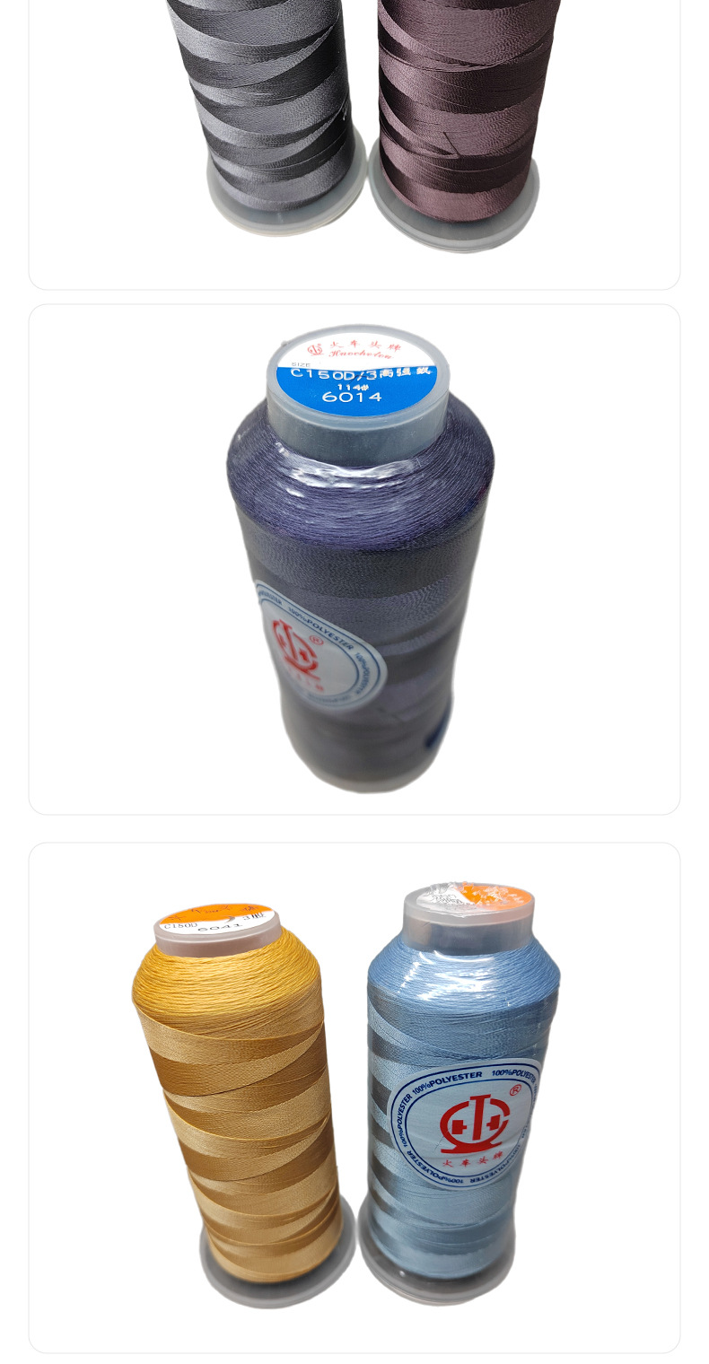 고강도 폴리 에스테르 염색 150D/3 바느질 실 의류 라운드 헤드 열쇠 구멍 벨트 텐트 가죽 신발 바느질 실