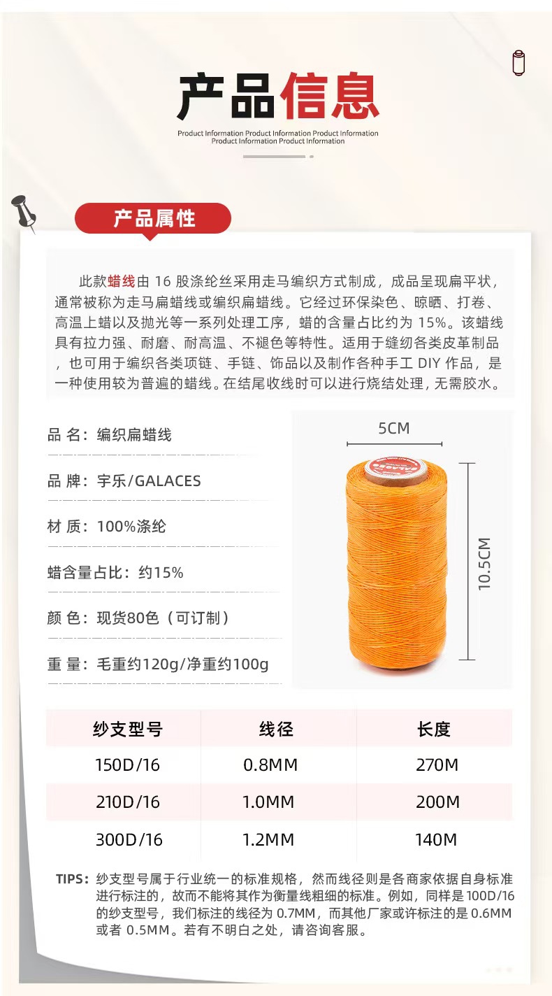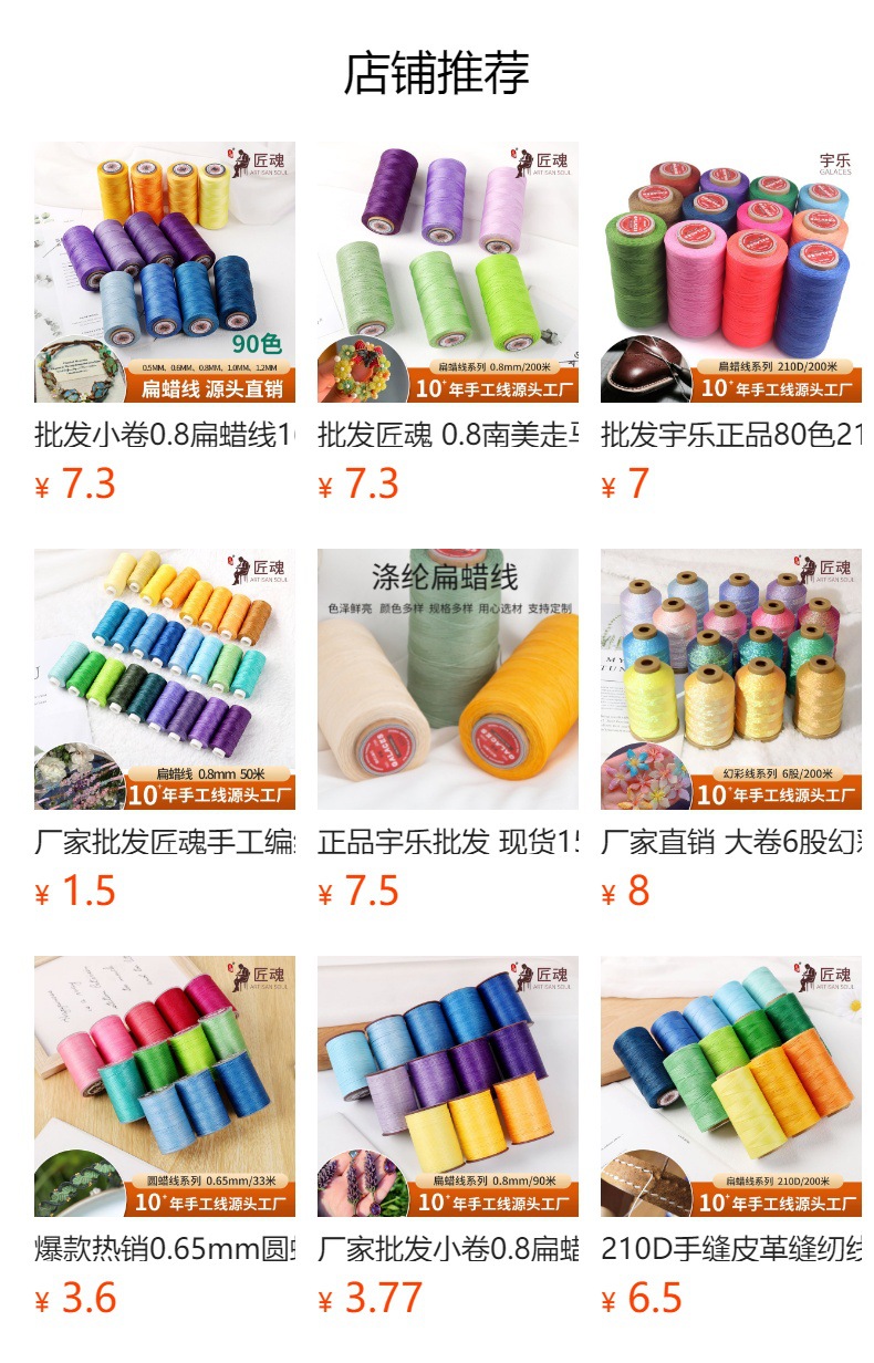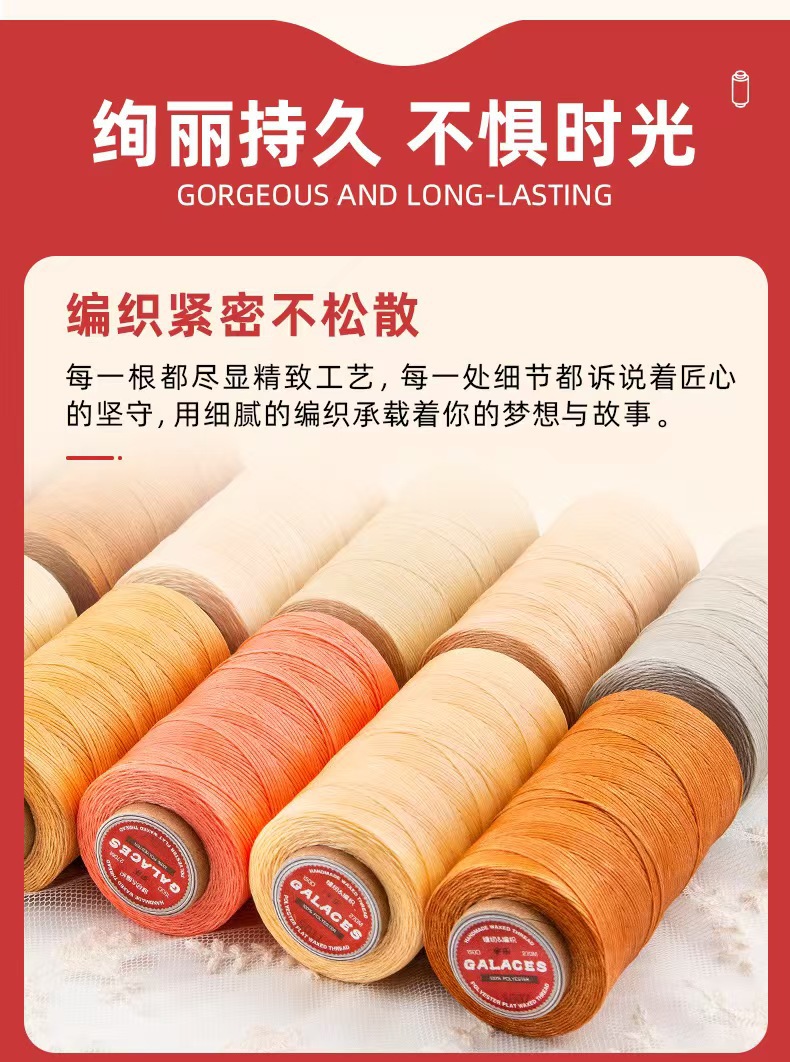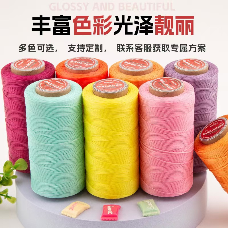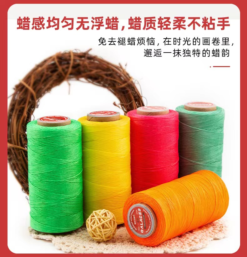 정품 Yule 손으로 꿰매는 가죽 짠 300D 왁스 로프 1.2mm80 컬러 대형 롤 말 플랫 왁스 라인 재고 도매