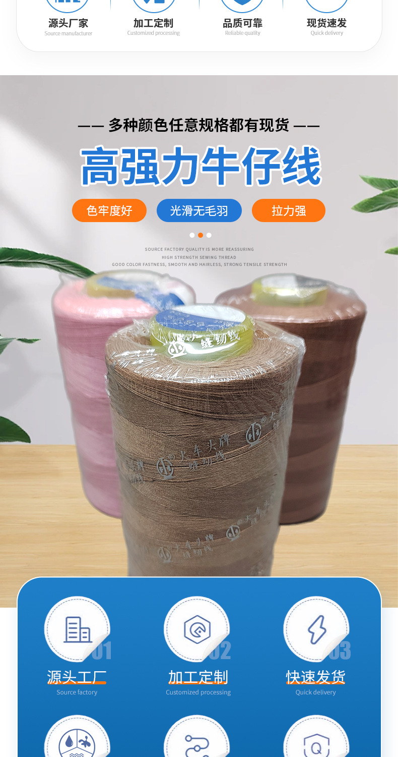 재고 도매 수하물 신발 하단 라인 청바지 의류 재봉사 20S/3 데님 스레드 멀티 사이즈 데님 실