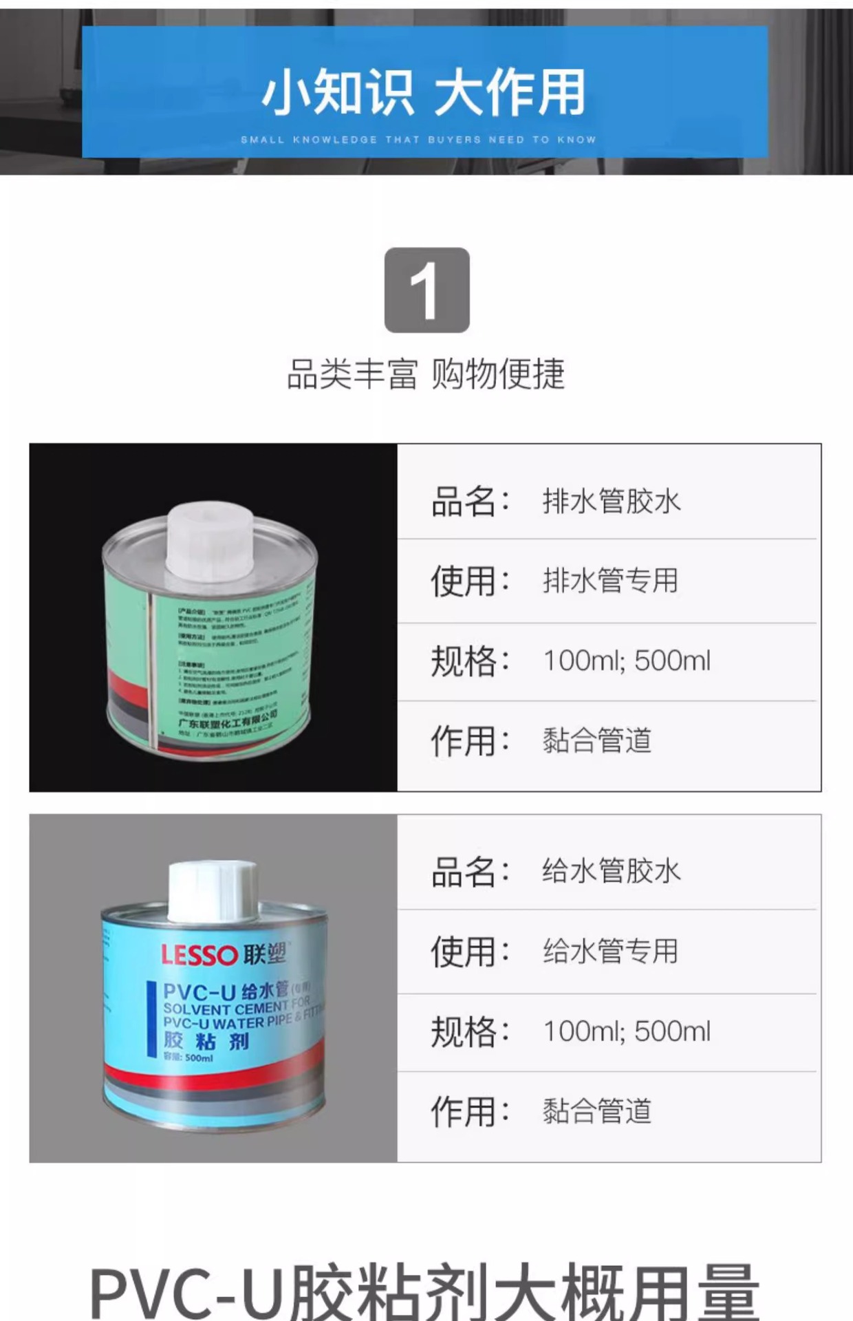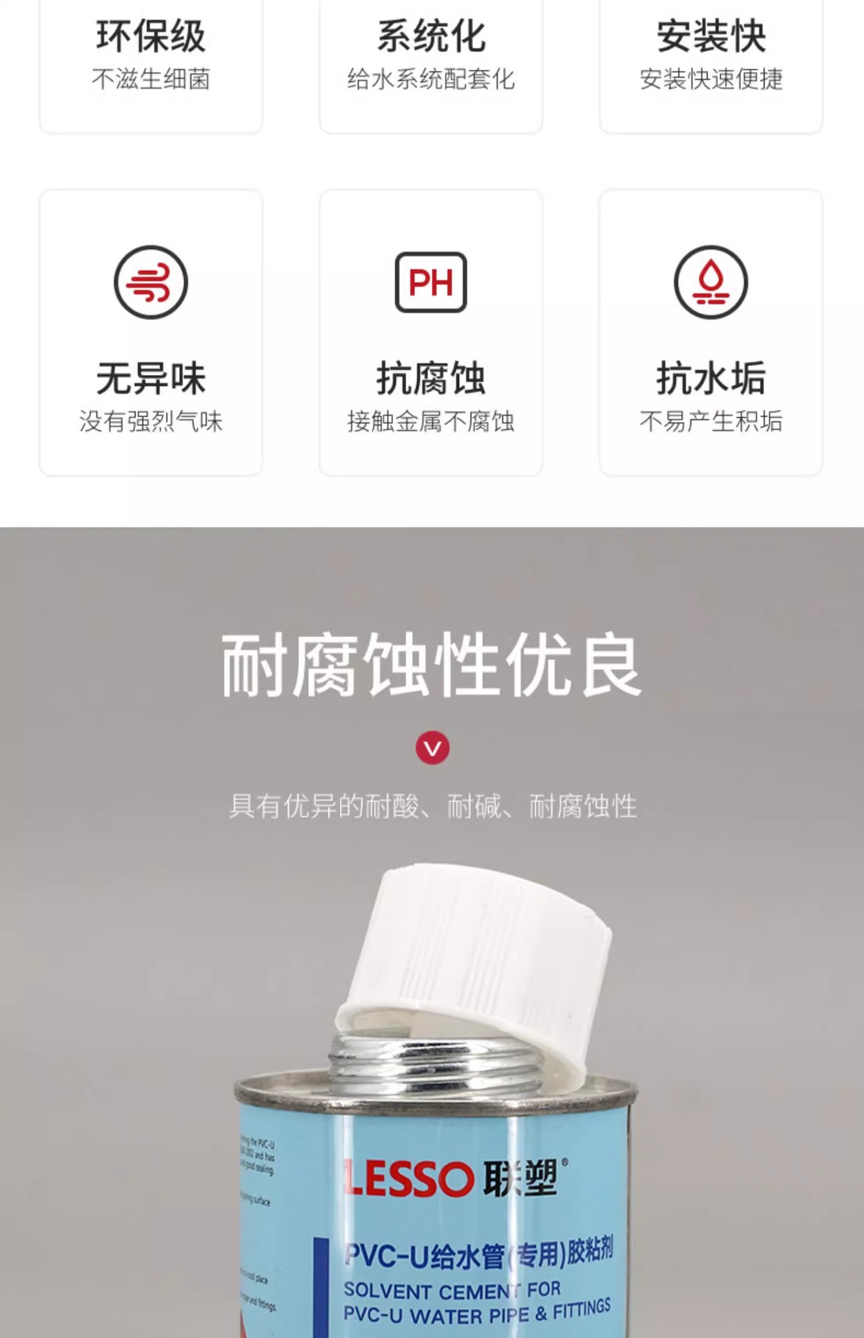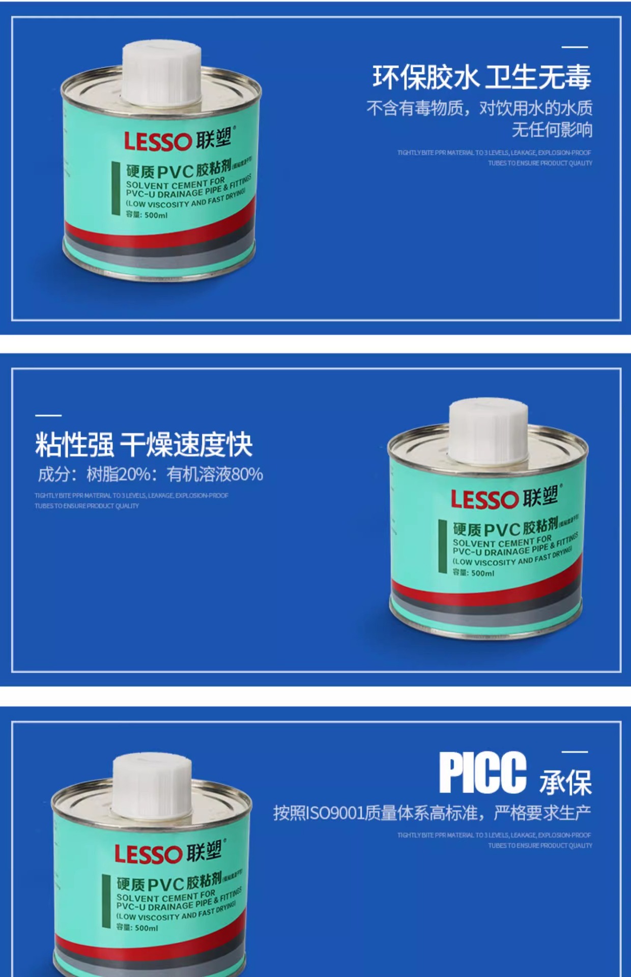Liansu PVC 접착제 환경 친화적인 파이프라인 접착제 100ml 500ml 배수관 및 급수관 특수 접착제