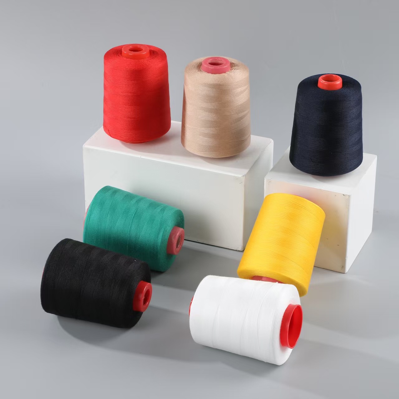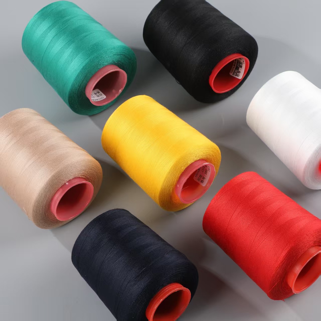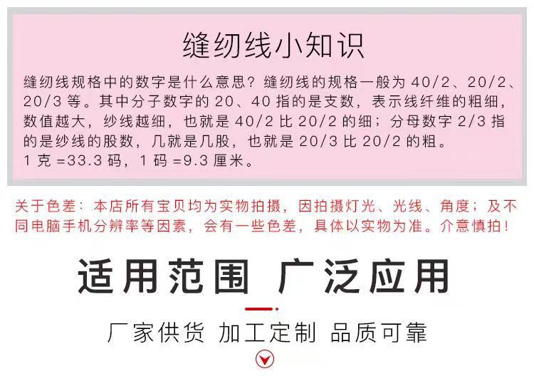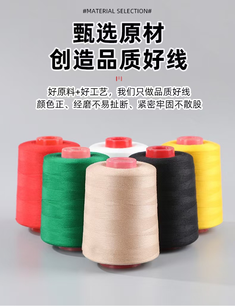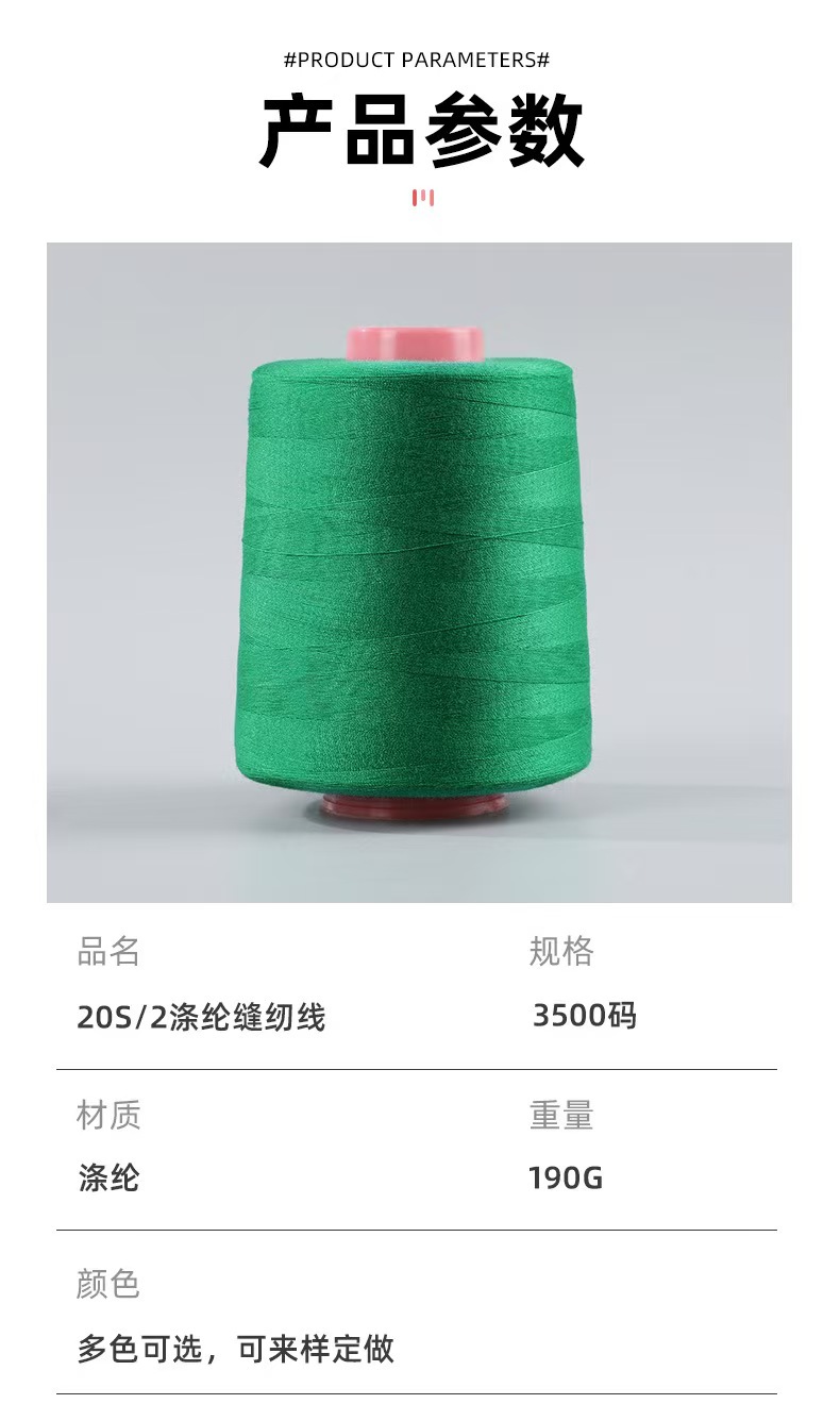 도매 20/2 중간 두꺼운 재봉사 604 폴리 에스터 탑 실 대형 롤 두 가닥 중간 두꺼운 데님 가방 공장 특별