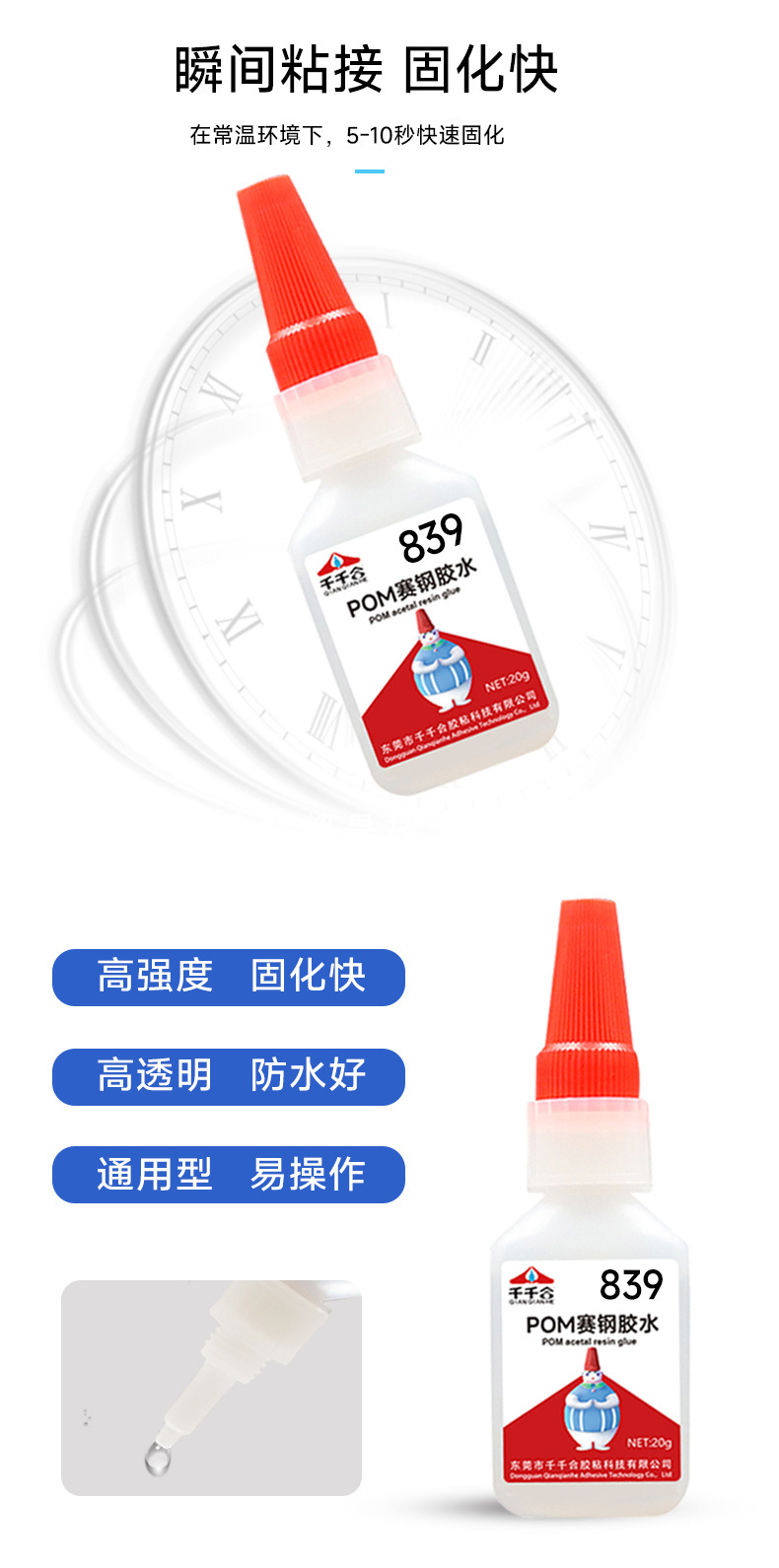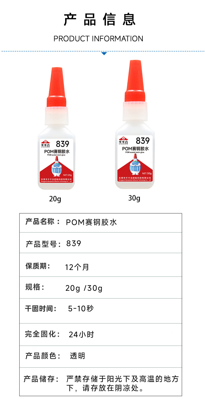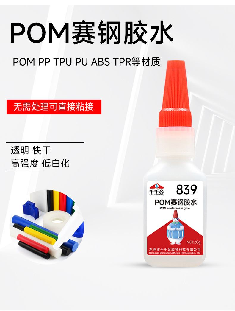 제조 업체 도매 839 Saigang 특수 접착제 본딩 POM Saigang 나일론 고무 플라스틱 소재 강력한 속건성 접착제