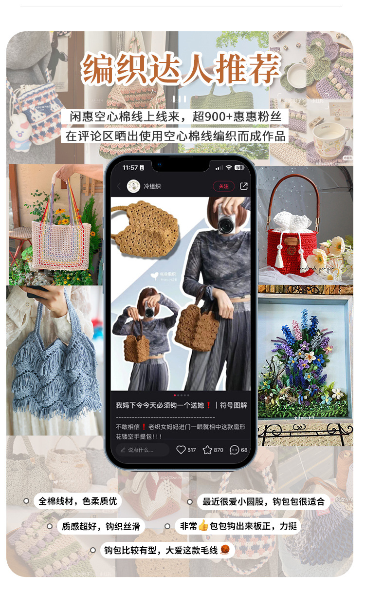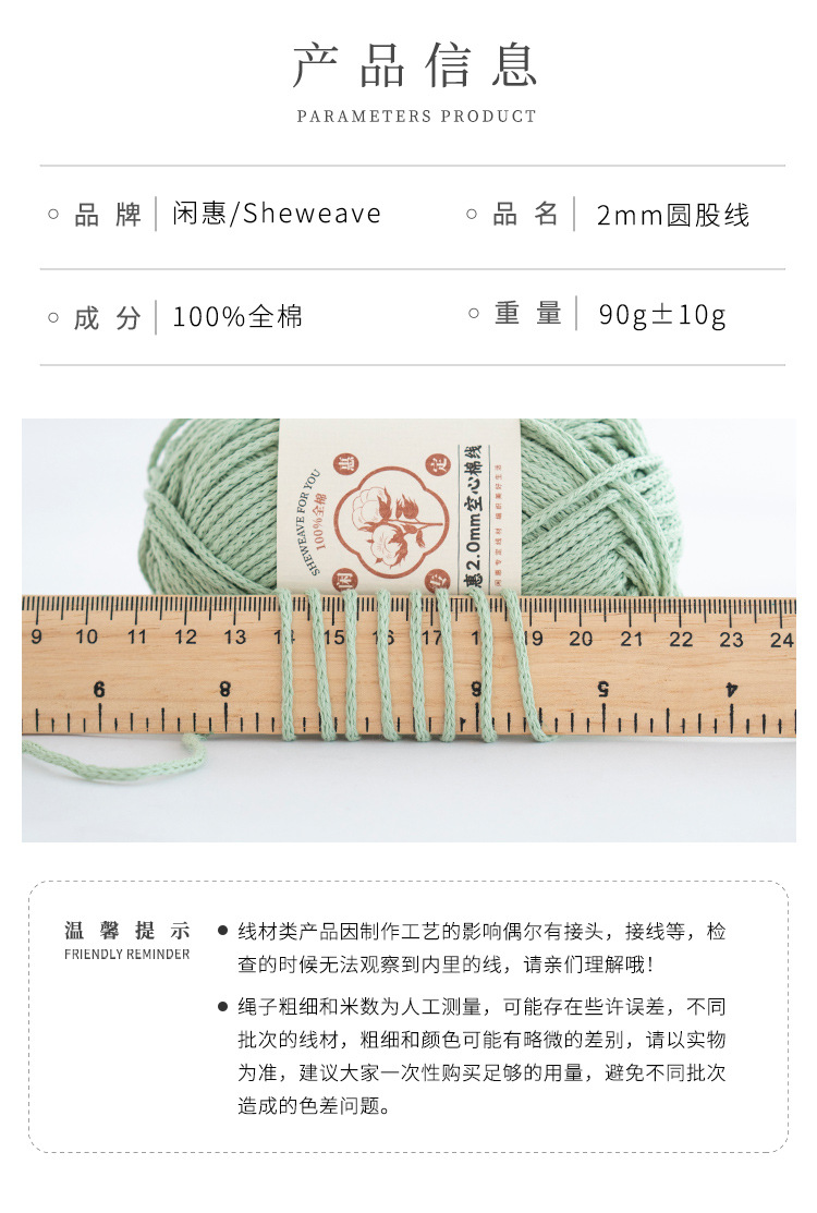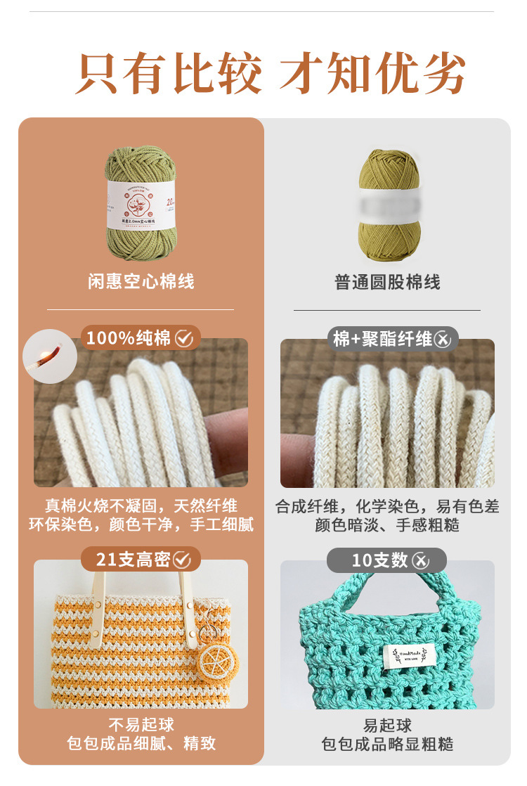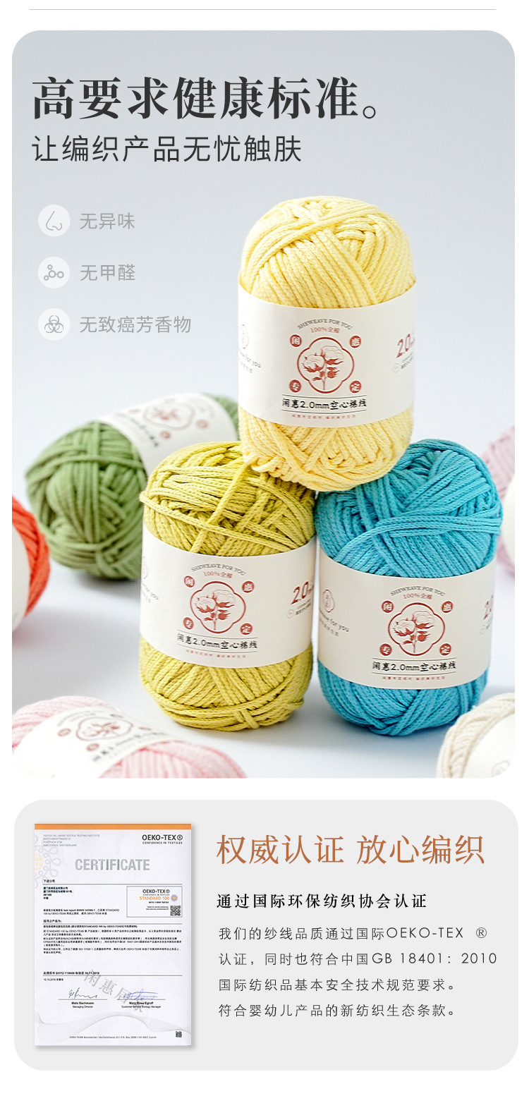 Xianhui 둥근 코어 중공 면사 순수 면화 손으로 짠 실 면사 diy 크로 셰 뜨개질 양모 공장 직접 판매