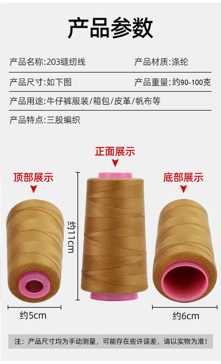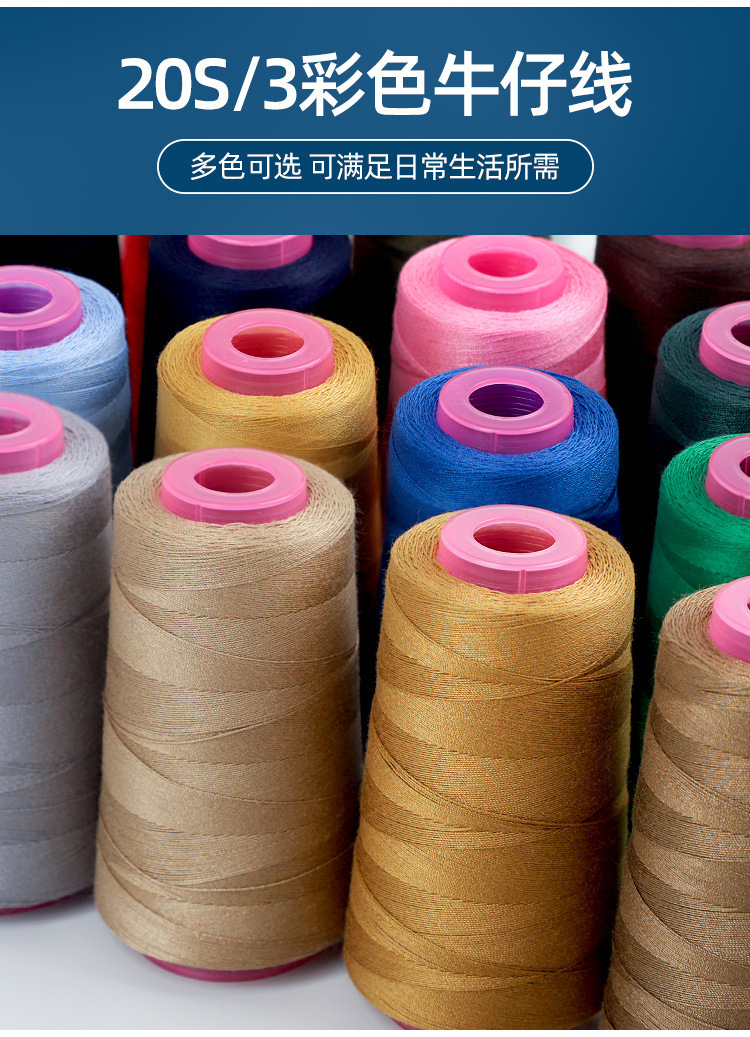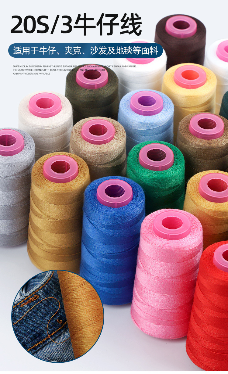 203 청바지실, 데님실, 가정용 손바느질실, 3가닥 두꺼운 실, 의류실, 재봉틀용 특수 폴리에스터실