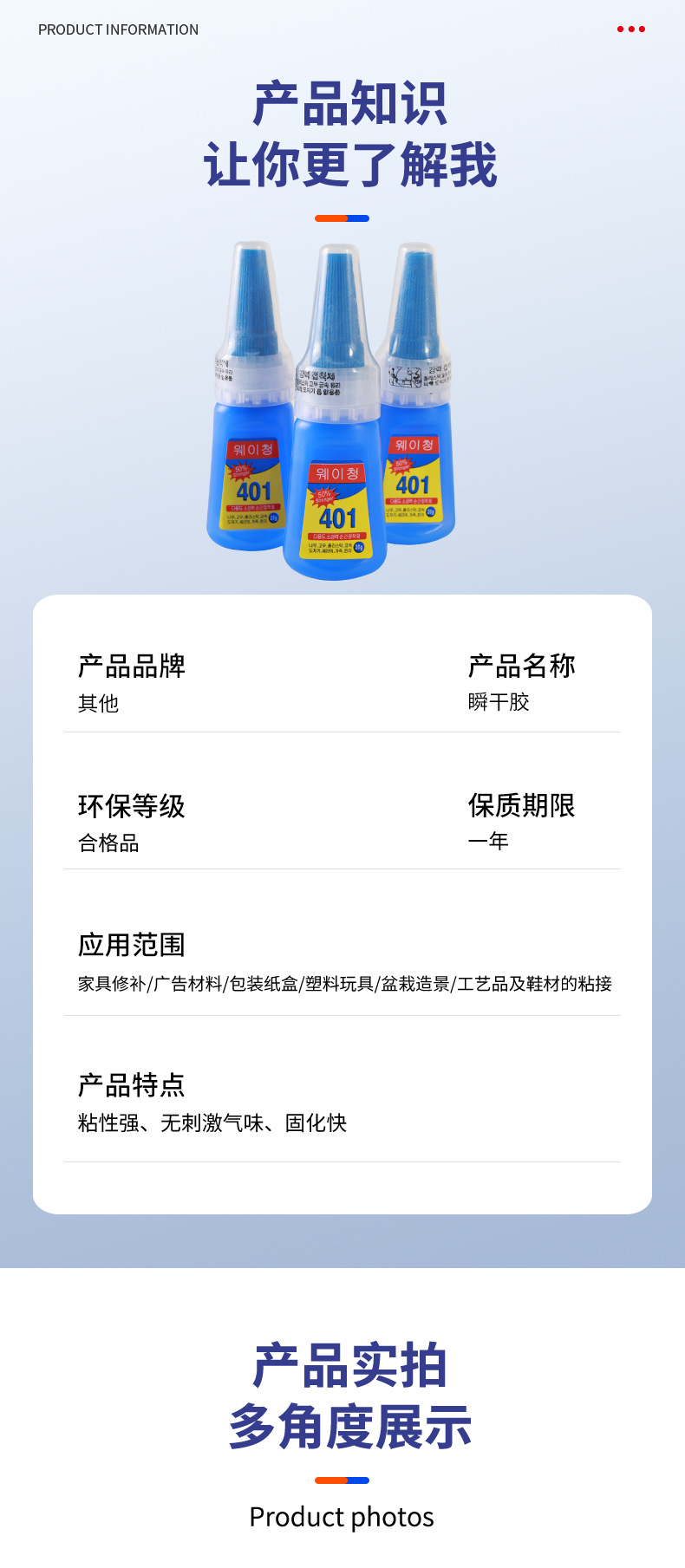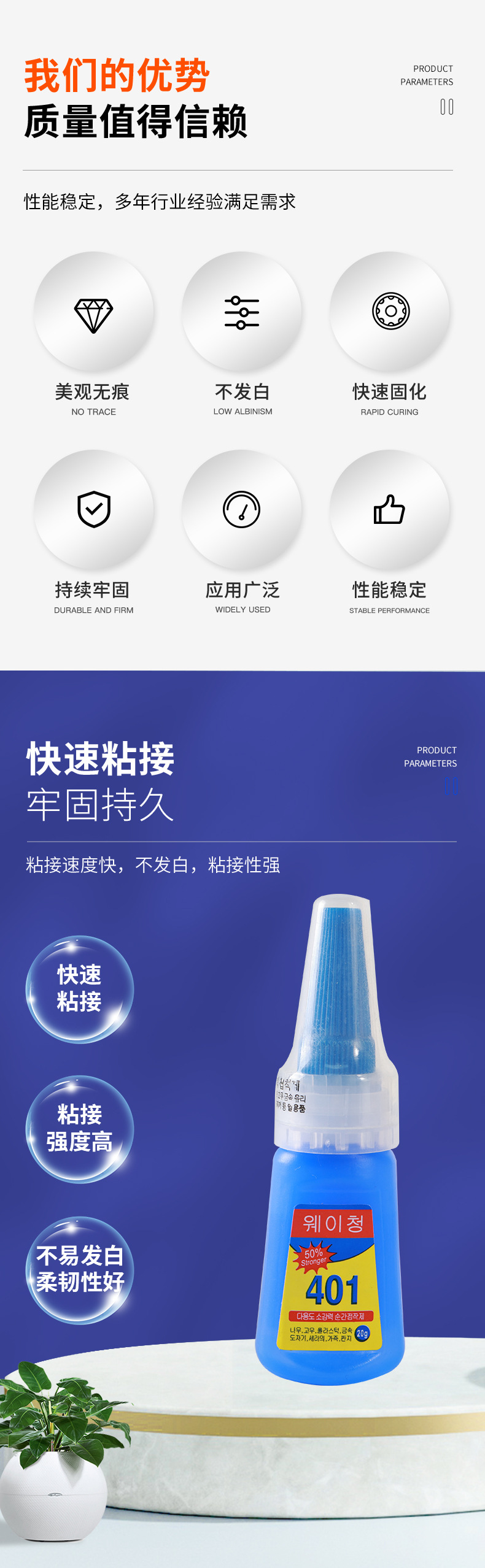 한국 401 접착제 금속 플라스틱 매니큐어 속건성 유성 접착제 강력한 범용 용접 접착제 502 신발 수리 접착제