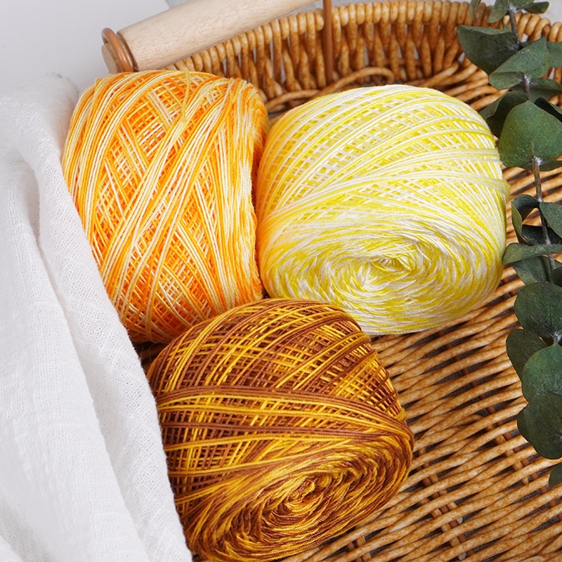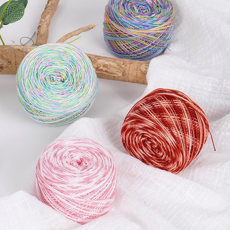 6 세그먼트 염색 레이스 실 도매 케이크 실 손으로 짠 중간 고반경 트위스트 여름 의류 수제 DIY 순수 면사