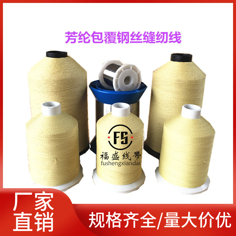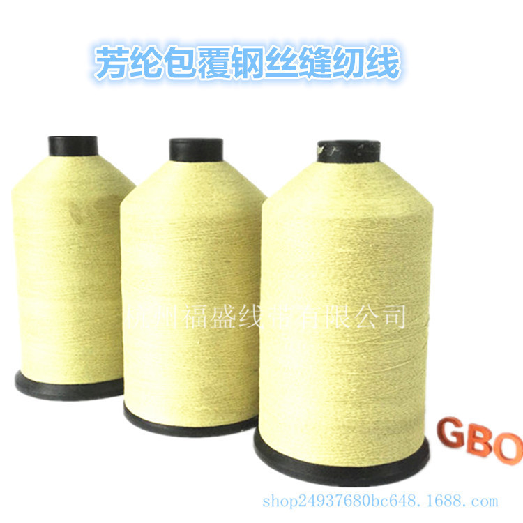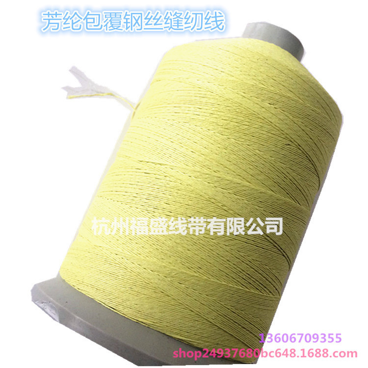 芳纶包钢丝缝纫线:产品特性 *耐高温、阻燃、不溶解不助燃只会碳化*强拉力*高模量、低延伸率、断裂强度高*耐磨、耐切割、增强加固*不易老化