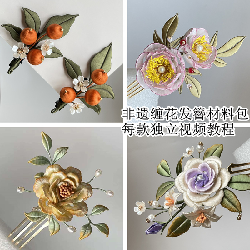 원래 무형문화유산 꽃무늬 재료 패키지에는 중국 전통 의상, 고대 스타일 신부 머리 장식, 머리띠, 부드러운 머리핀 DIY를 절단하기 위한 비디오가 포함되어 있습니다.