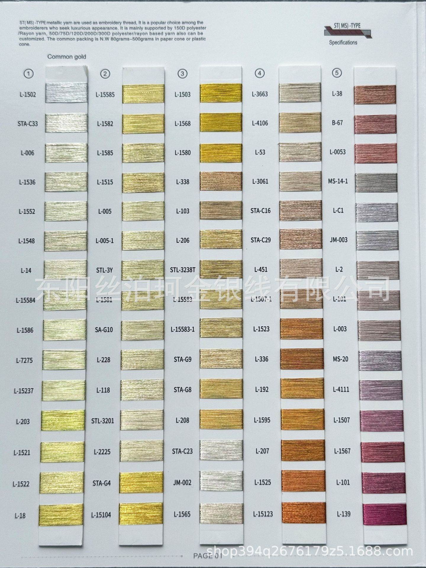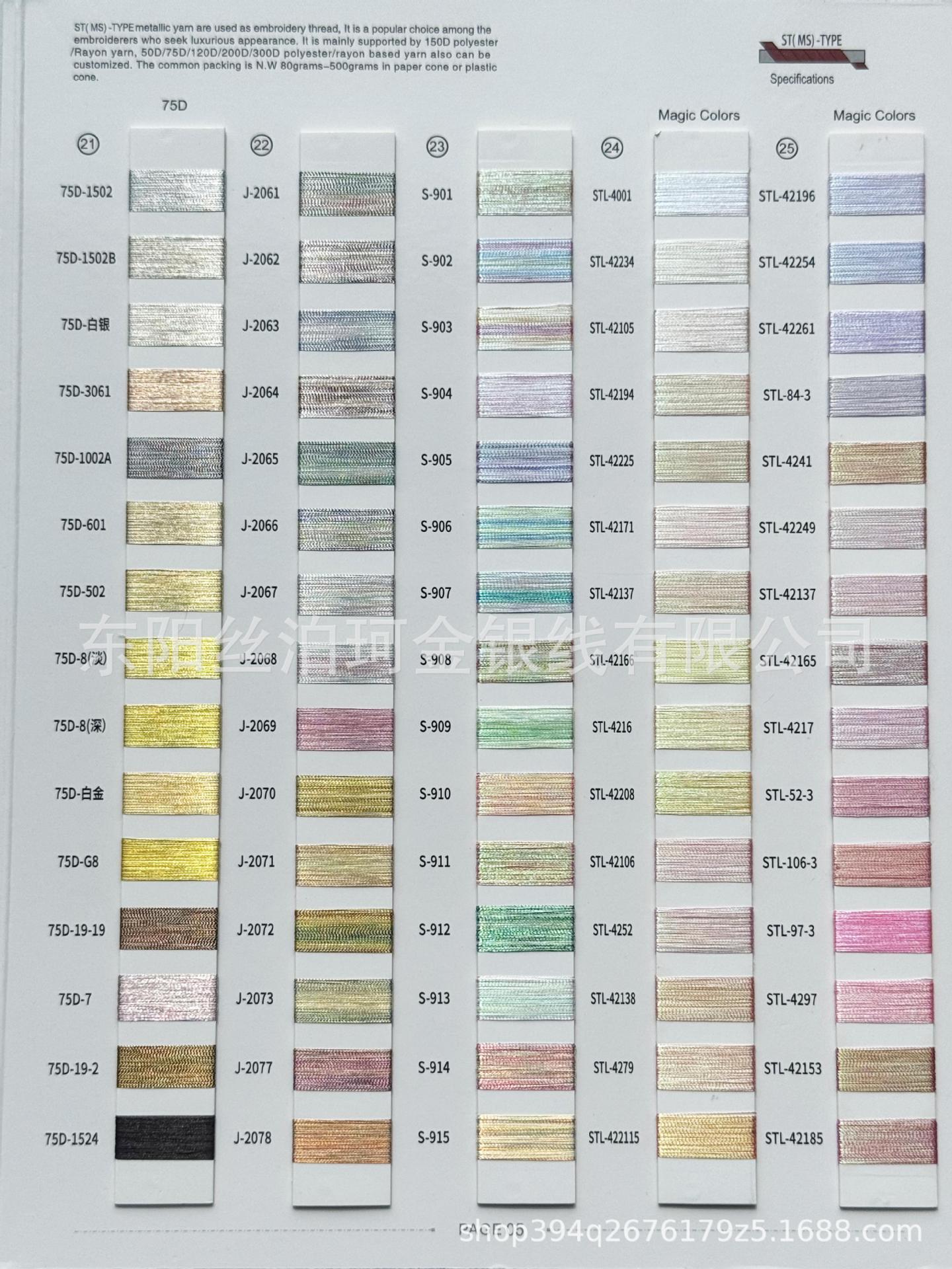 공장 직접 판매 스팟 ST 밀봉 패키지 75D 자수 술 금은사 50g 다채로운 폴리에스터 고강도 로프 직물