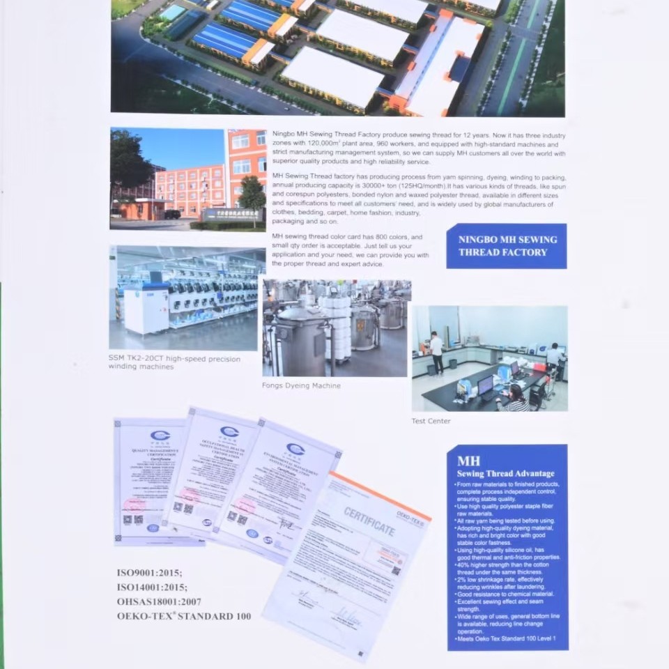 Mengheng MH 브랜드 800색 폴리에스터 단섬유 재봉사 컬러 카드