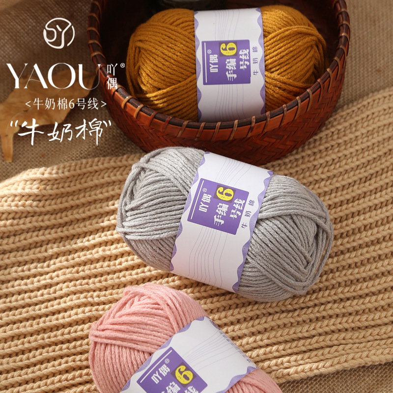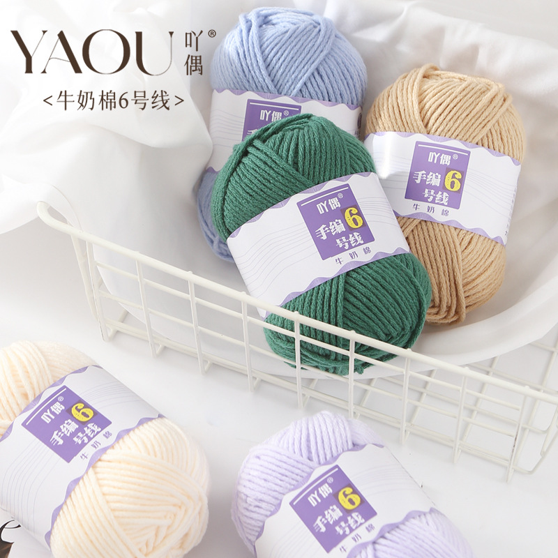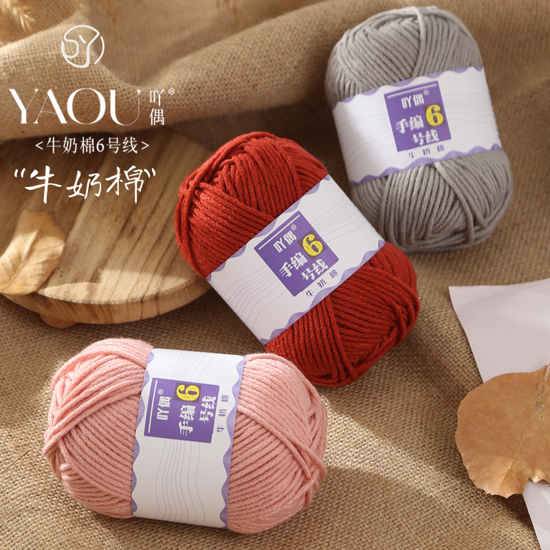 Yaou 손으로 짠 No. 6 6 가닥 우유면 원사 피부 친화적 인 베이비 라인 인형 꽃 담요 크로 셰 뜨개질 중간 두꺼운 DIY 스카프 모자